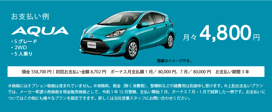 ※上記車両本体価格には、保険料、税金(消費税を除く)、登録等に伴う費用などは含まれておりません。
