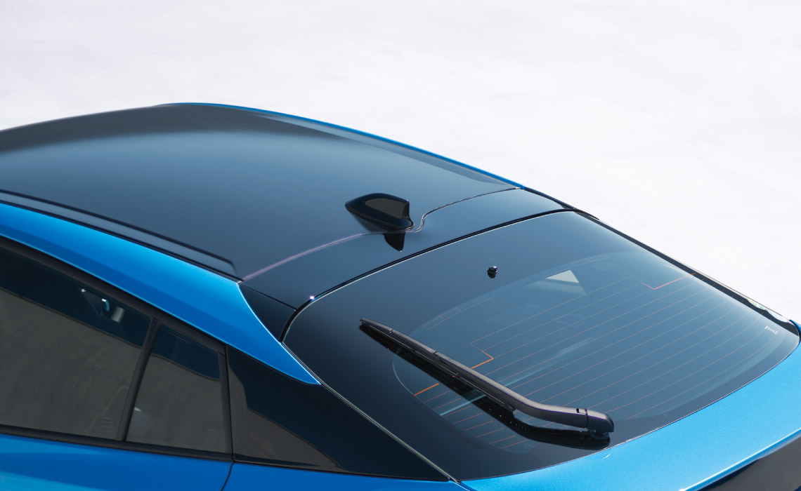 ルーフには繊細な凹凸を施した幾何学調フィルムを採用。スポーティでプレミアムな印象を高めるブラックのルーフフィルムです。ルーフアンテナとドアミラーは、それぞれブラック塗装となります。